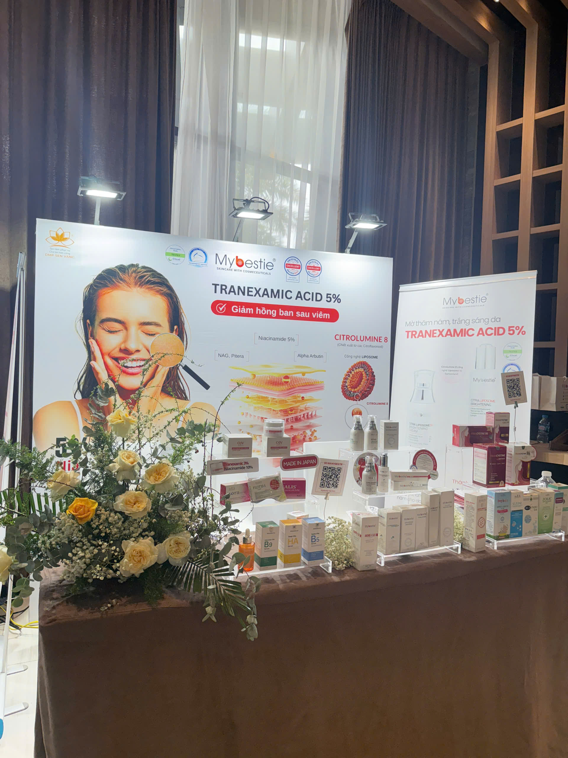 Với vai trò là đơn vị đồng hành, Mybestie mang đến sự kiện dấu ấn chuyên môn nổi bật thông qua các giải pháp tiên tiến ứng dụng trong chăm sóc và cải thiện sắc tố da. Nổi bật là công thức Tranexamic Acid 5% + Niacinamide 5% kết hợp với Citrolumine 8, được nhiều bác sĩ quan tâm bởi khả năng: